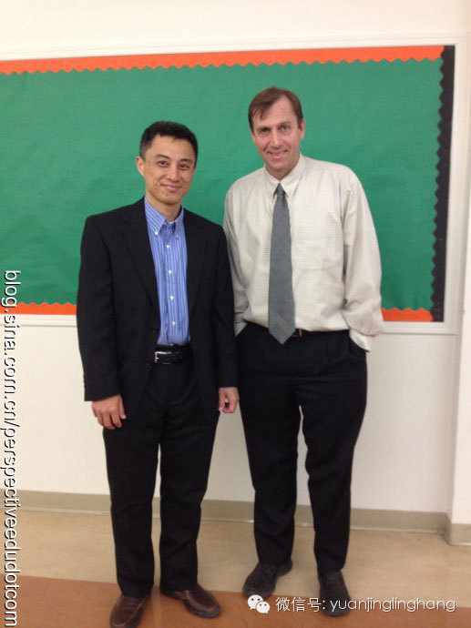 在英语教学区的走道上,意外碰到了Sealy老师(右)。他是教高级英语的老师,同时还是学校的高尔夫球的教练。人非常和蔼。